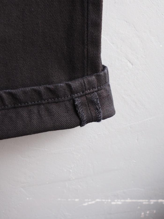 一般的なデニムとはひと味違う独特なドライタッチな肌触りが特徴的な実用性と快適性を兼ね備えた生地。
